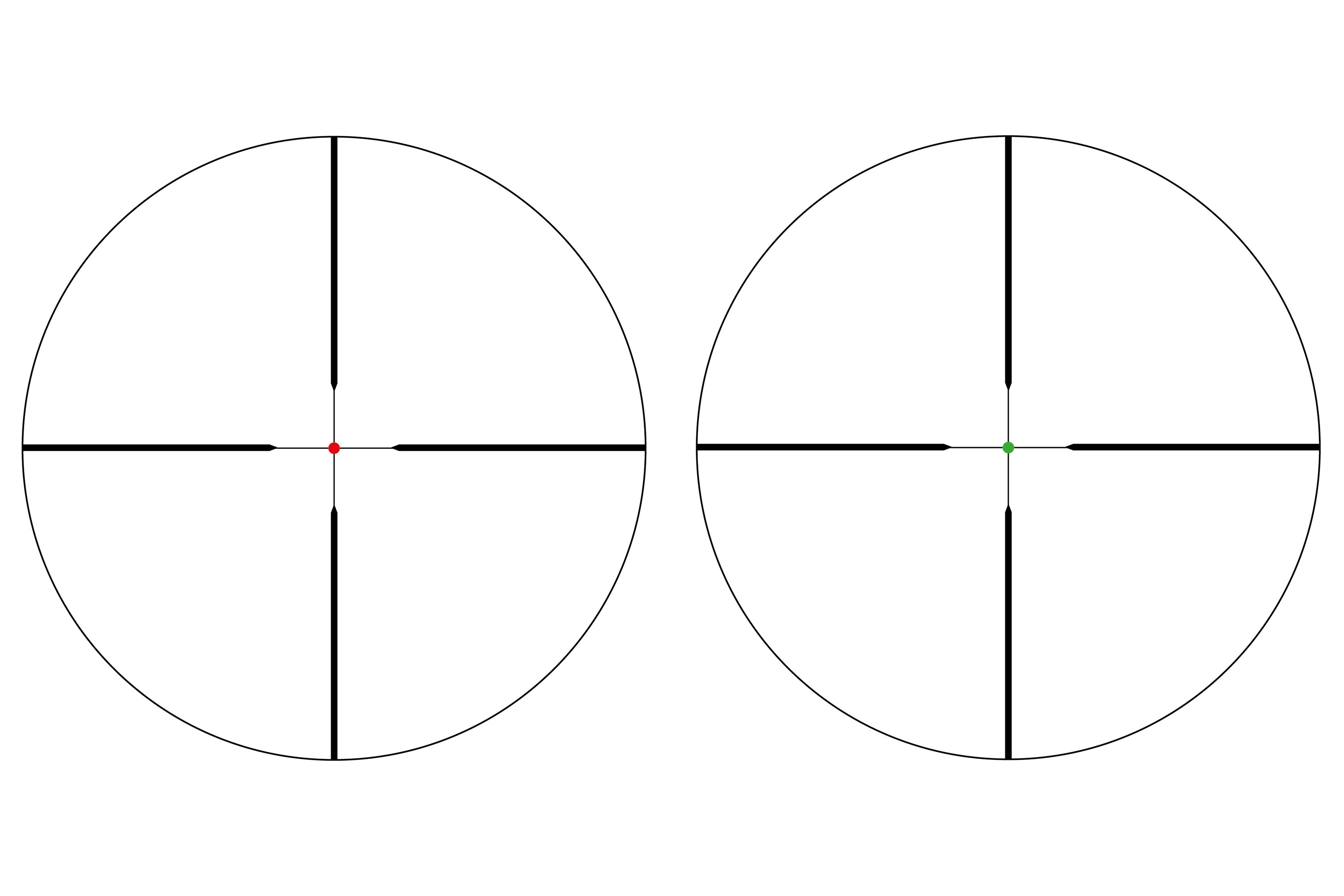 Die Helligkeit des beleuchteten Zielfernrohrs ist in jeweils 5 Stufen einstellbar. Man kann zwischen den Farben Rot und Grün wählen.