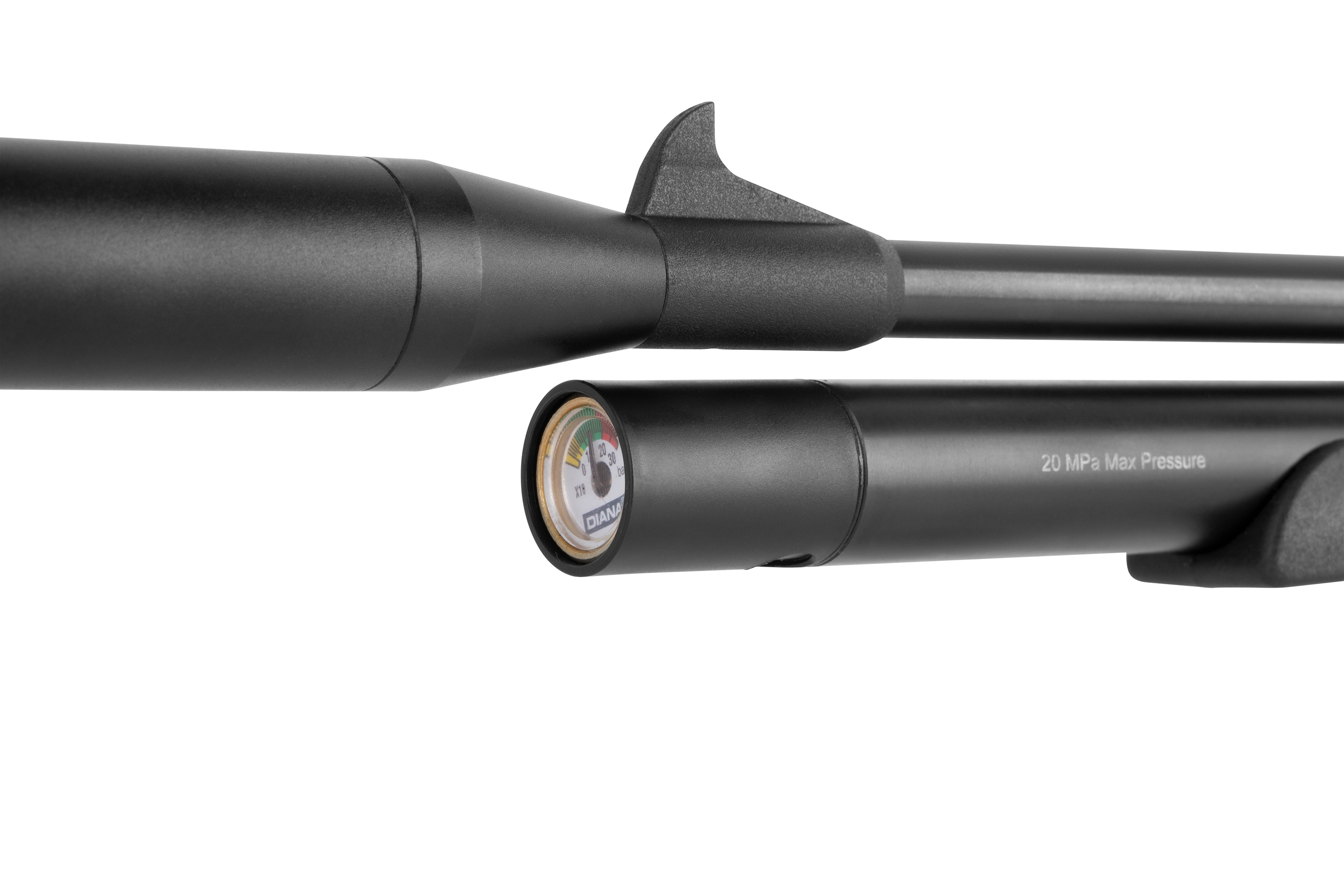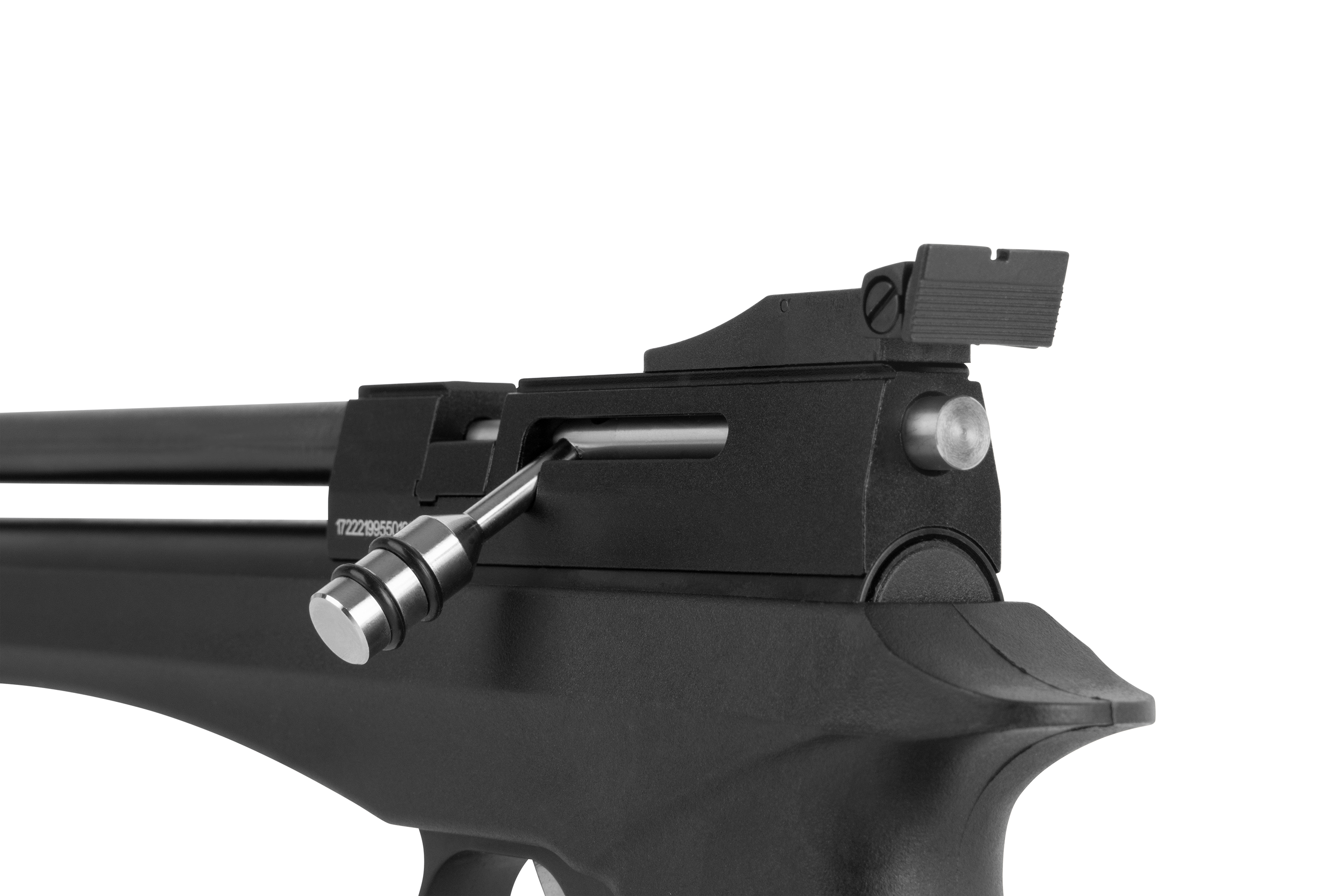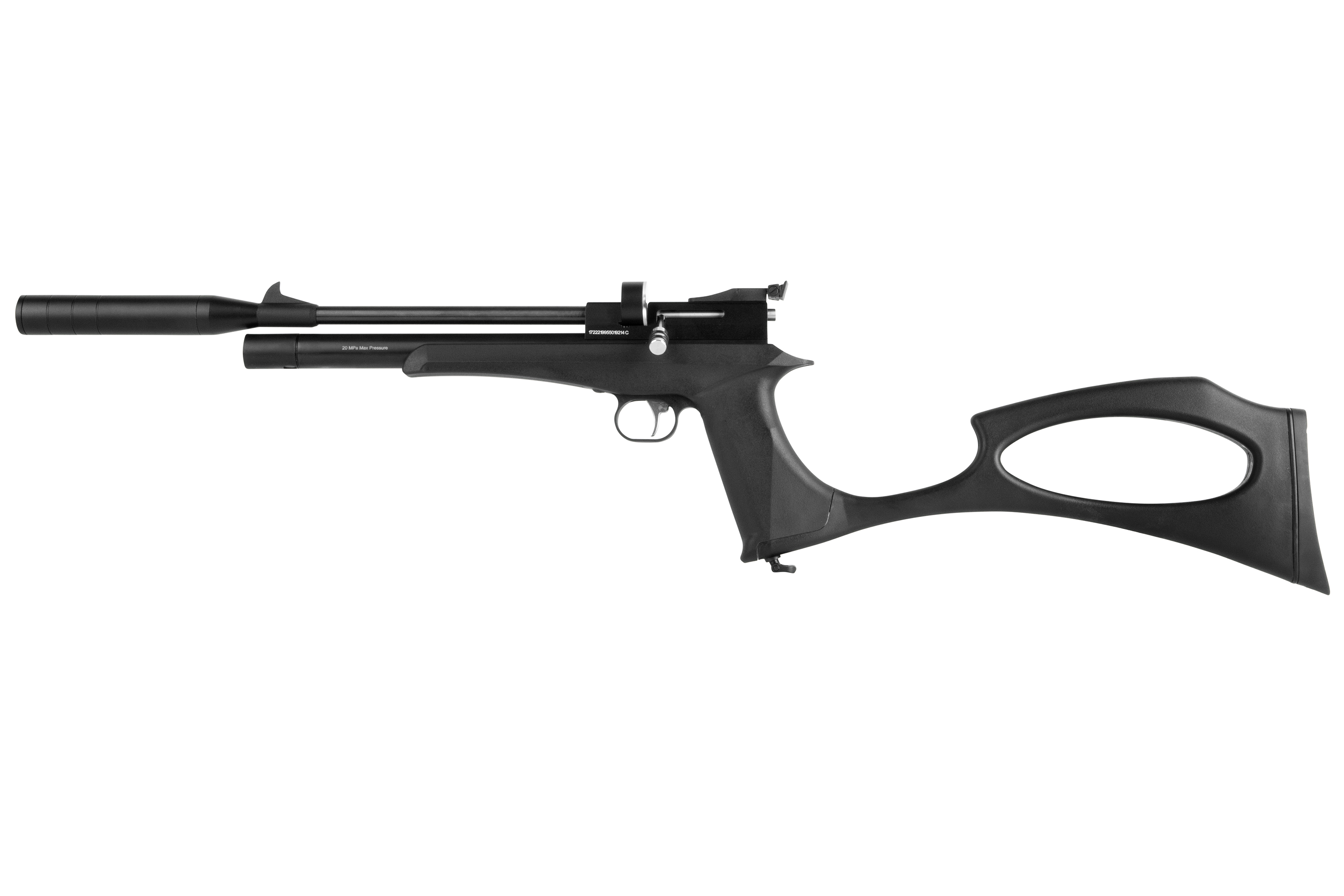 Die DIANA bandit black mit integriertem Regulator ist eine leistungsstarke Pressluft-Pistole mit abnehmbarer Schafterweiterung und aufgedrehtem Schalldämpfer. Die Pistole kann mit einer Einlage im Einzelschuss-Modus und mit einem 9-Schuss Trommelmagazin betrieben werden. Die gefräste Prismenschiene ermöglicht den Anbau einer passenden Optik. Der maximale Fülldruck beträgt 200 bar.
