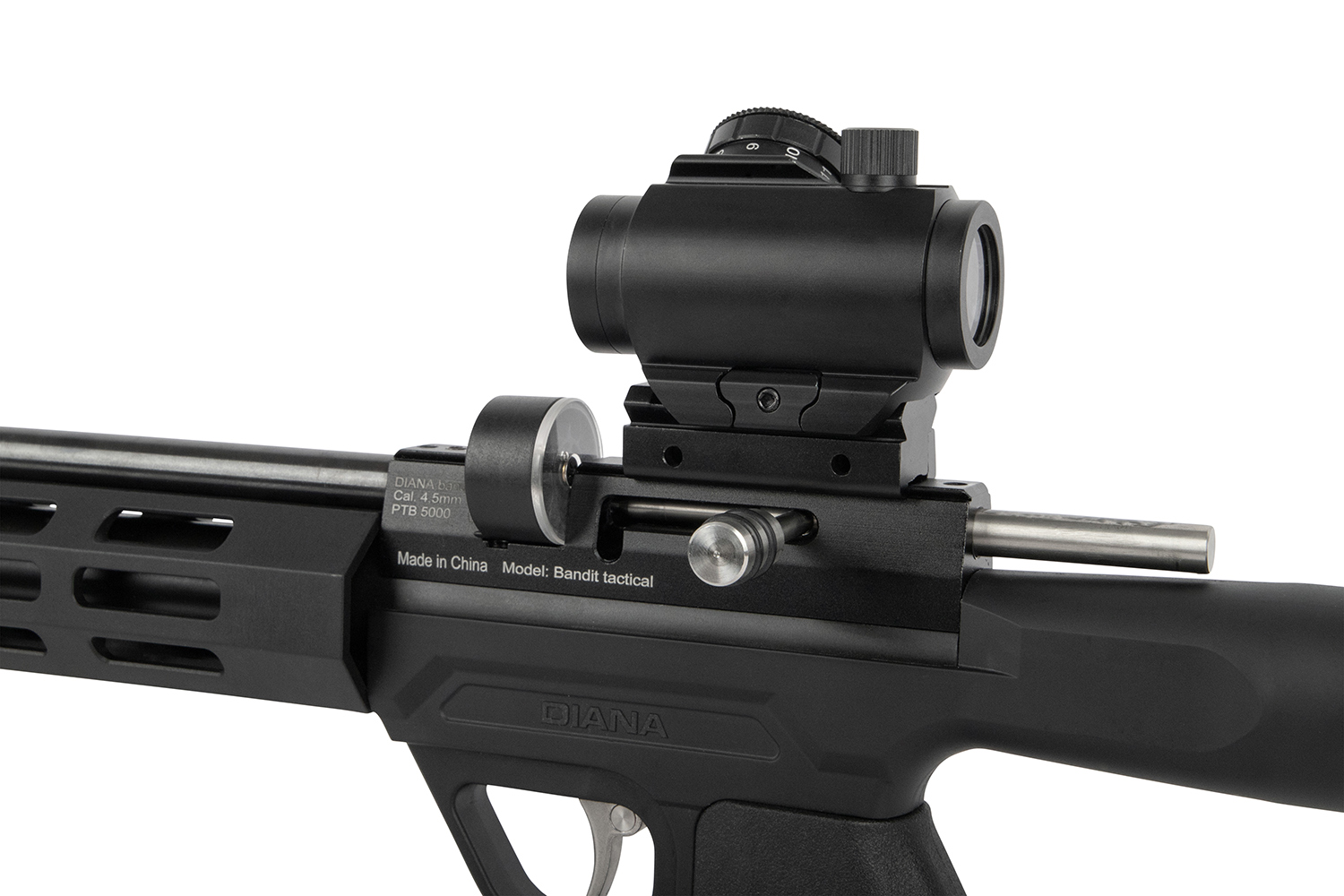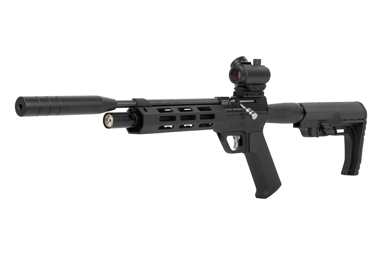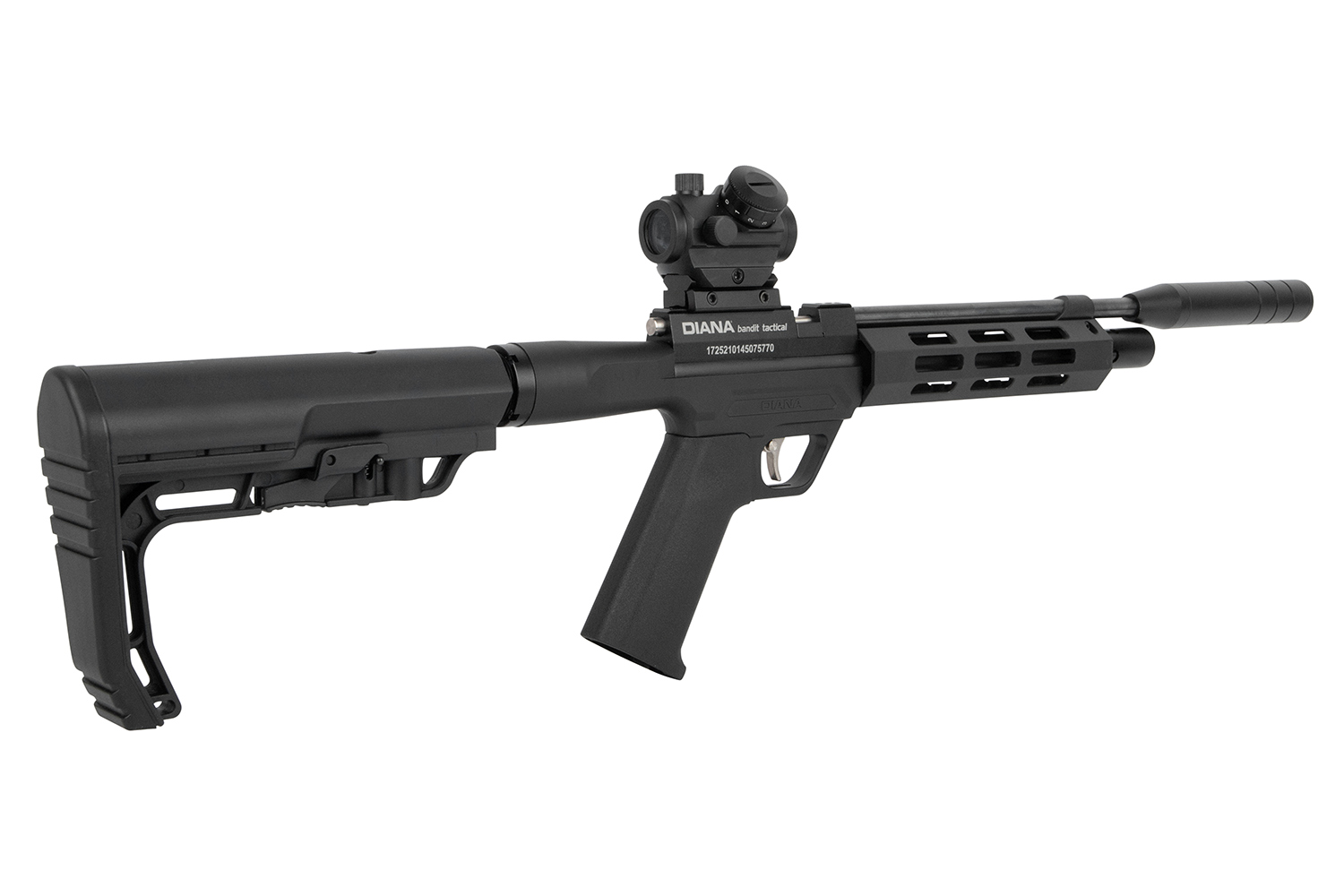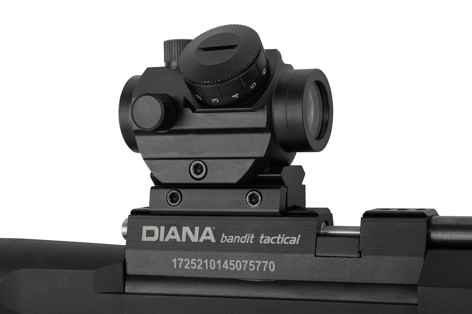 Die DIANA Bandit Tactical ist eine kompakte PCP-Pressluftwaffe mit umfangreicher Ausstattung. Ein integrierter Regulator sorgt für eine konstante Druckabgabe und gleichmäßige Schussleistung. Der DIT – DIANA Improved Trigger ermöglicht eine präzise und kontrollierte Schussauslösung.