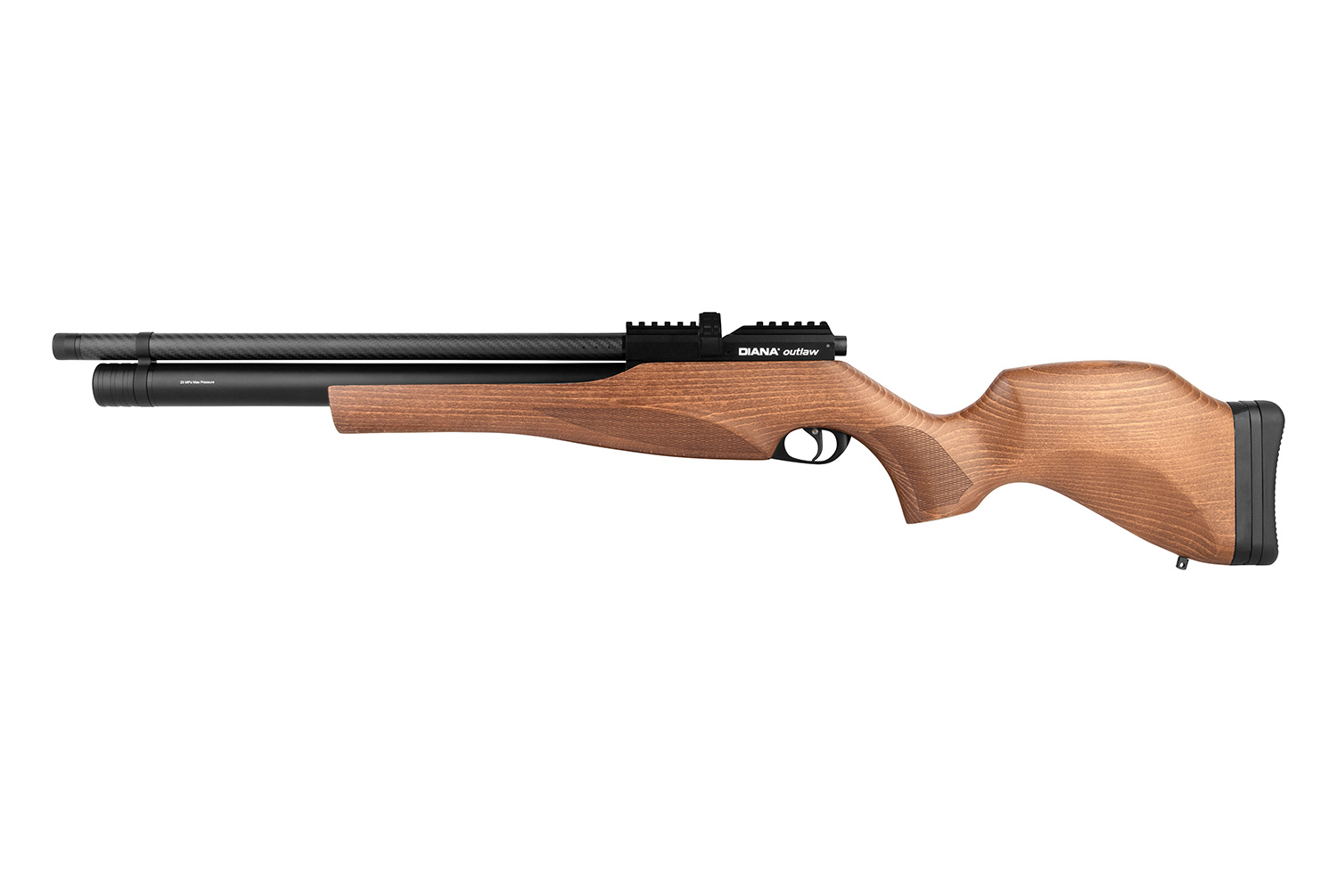 Das neue DIANA outlaw PCP Gewehr bietet ultimativen Komfort und Präzision. Mit einem ergonomischen Holzschaft und Fischhaut-Textur, einem schalldämpfenden Carbonlaufmantel und zwei Manometern ausgestattet, ist es eine Klasse für sich. Die höhenverstellbare Schaftkappe und optimierte Spannhebelposition maximieren die Benutzerfreundlichkeit. Zusätzlich bietet die 22mm Picatinny-Schiene vielfältige Zubehöroptionen. Die Riemenbügelöse am hinteren Ende und die M-LOK Schiene am vorderen Ende des Schaftes ermöglichen eine einfache Handhabung. Eine Waffentasche ist ebenfalls im Lieferumfang enthalten.