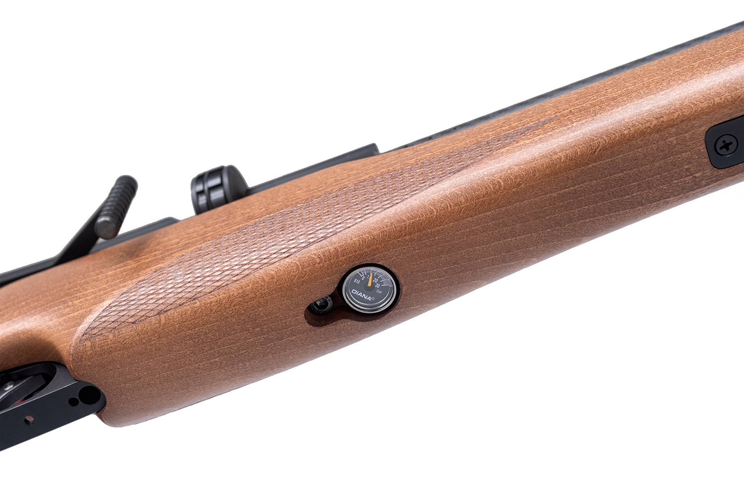 Die neue DIANA skyhawk setzt Maßstäbe für Bullpup-PCPs. Mit einem leichten und gut ausbalancierten Design, Carbonlaufmantel für Schalldämpfung, integrierter Wangenauflage und höhenverstellbarer Schaftkappe bietet sie unschlagbare Präzision und Komfort. Zwei Manometer halten den Druck im Blick, während die 22mm Picatinny-Schiene vielseitige Zubehörmöglichkeiten bietet. Der Holzschaft mit Fischhaut-Textur und praktische Details wie Riemenbügelöse und M-LOK Schiene komplettieren das Paket. Eine Waffentasche ist ebenfalls enthalten.Features Leichte und gut ausbalancierte Bullpup-PCP Laufmantel aus Carbon mit schalldämpfendem Effekt Integrierte Wangenauflage Zwei Manometer Höhenverstellbare Schaftkappe Optimierte Spannhebelposition 22mm Picatinnyschiene Holzschaft mit Fischhaut Riemenbügelöse am hinteren Ende und M-LOK Schiene am vorderen Ende des Schaftes Inkl. Waffentasche