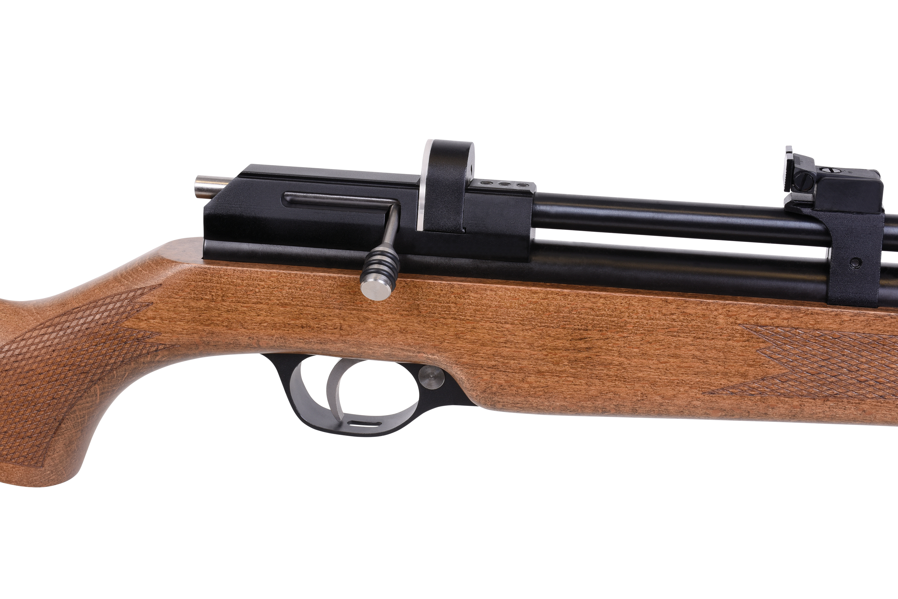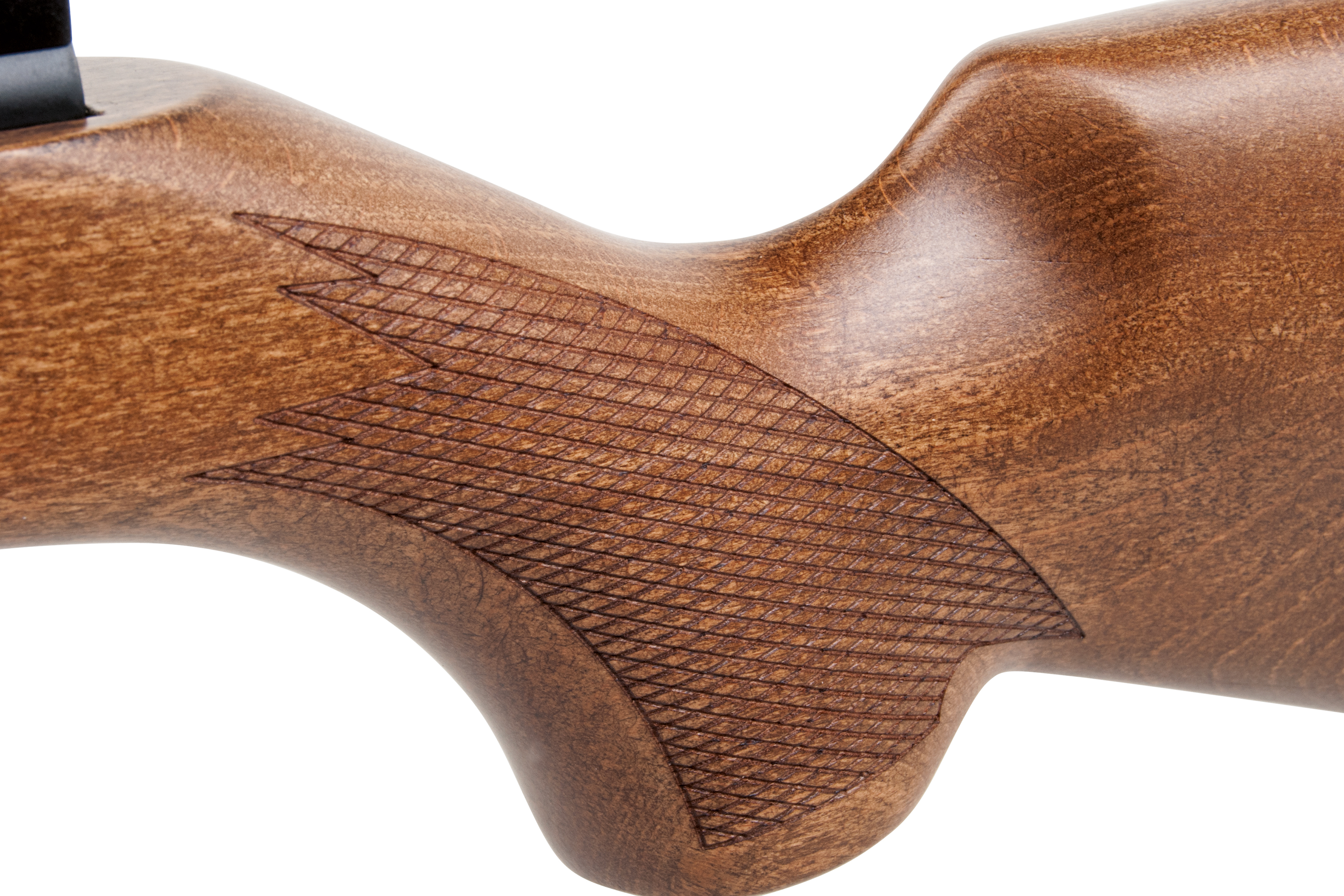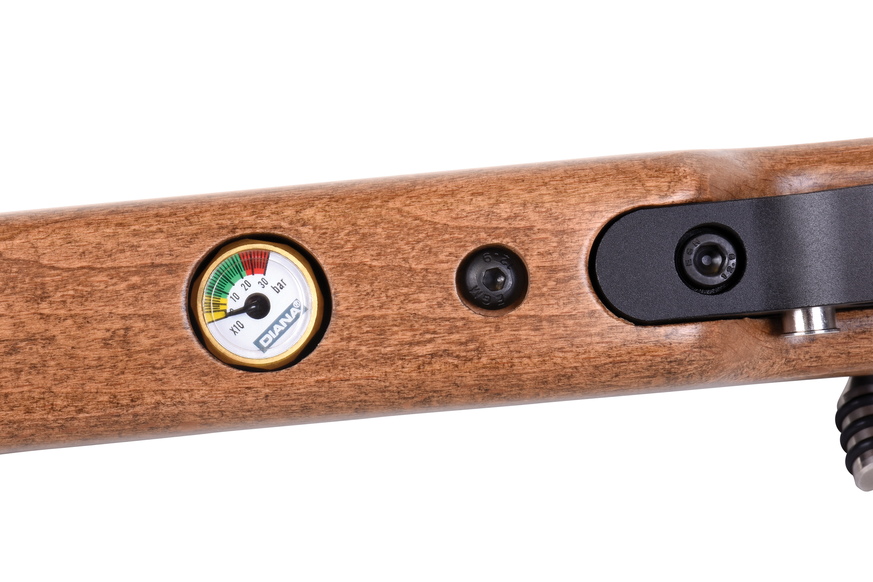 DIANA Pressluftgewehr mit integriertem Regulator für ein gleichbleibende Schussleistung. Das Gewehr kann sowohl im Einzelschuss-Modus als auch mit dem mitgelieferten 9-Schuss Magazin betrieben werden. Der hochwertige Buchenholzschaft mit Fischhaut sorgt für optimalen Halt. Der maximale Fülldruck liegt bei 200 bar.